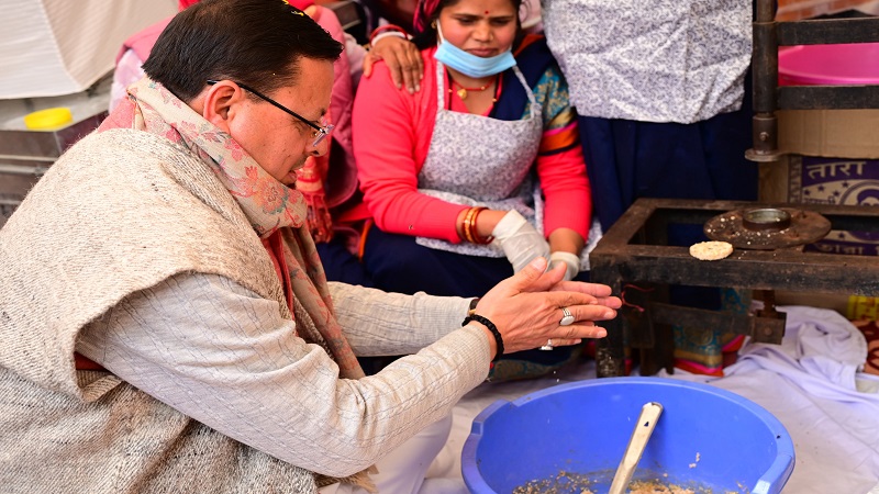 हाथ से महाप्रसाद बनाते हुए मुख्यमंत्री ने कहा कि उन्होंने बचपन में घर के कार्यों में खूब हाथ बटाया है। बचपन में वो त्योहारों के समय अपनी माता जी के साथ स्थानीय पकवान बनाने में खूब सहयोग करते थे। वहीं सिलबट्टे पर कई बार अपनी माता जी के साथ मिलकर नमक भी पीसा है। आटा गूँथने से लेकर जंगल में घास काटने तक में उन्होंने हमेशा हाथ बटाया। इस अवसर पर उन्होंने महिलाओं से सरकार की महाप्रसाद योजना से जुड़ने के बाद आजीविका में हुए बदलाव की जानकारी भी ली।