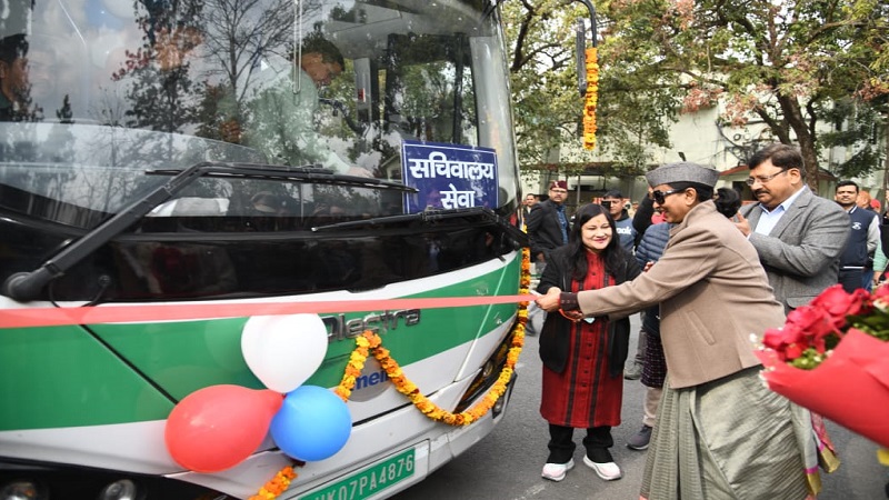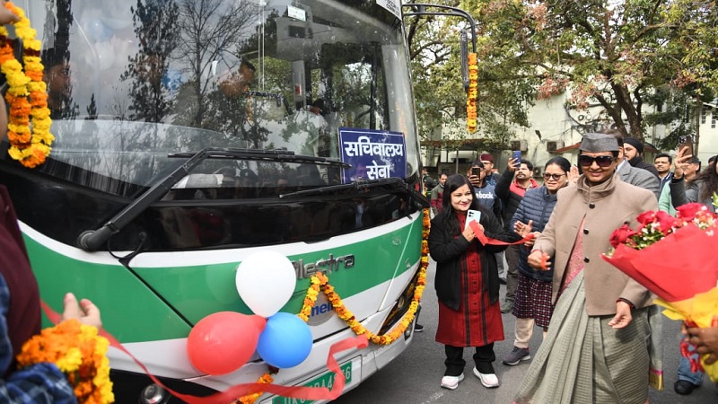मुख्य सचिव राधा रतूड़ी ने सचिवालय के कार्मिकों के लिए इलेक्ट्रिक बस सेवा का किया शुभारम्भ