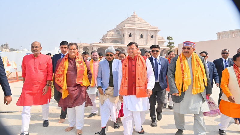 मुख्यमंत्री पुष्कर सिंह धामी मंत्रिमंडल में अपने सहयोगियों सतपाल महाराज, प्रेमचंद अग्रवाल, सुबोध उनियाल, डॉ धन सिंह रावत, रेखा आर्य एवं राज्यसभा सांसद नरेश बंसल के साथ जॉलीग्रांट एयरपोर्ट पहुंचे, जहां से वे श्री अयोध्या धाम के लिए रवाना हुए। अयोध्या में महर्षि वाल्मीकि अंतरराष्ट्रीय हवाई अड्डा में पहुंचे पर मुख्यमंत्री धामी और उनके सहयोगियों का भव्य स्वागत हुआ।