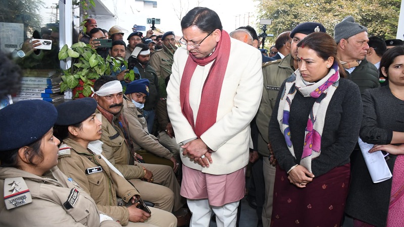 हल्द्वानी/देहरादून, खबर न्यू इंडिया (न्यूज़ डेस्क) : मुख्यमंत्री पुष्कर सिंह धामी ने शुक्रवार को दोपहर बाद हल्द्वानी पहुंचकर गुरुवार को सांय हुई उपद्रव की घटना की स्थिति का जायजा लिया। मुख्यमंत्री ने हल्द्वानी बनभूलपुरा में हुई घटना में घायल महिला पुलिस दल समेत अन्य पुलिसकर्मियों, प्रशासन, नगर निगम कर्मी और पत्रकार साथियों का भी हाल चाल जाना।