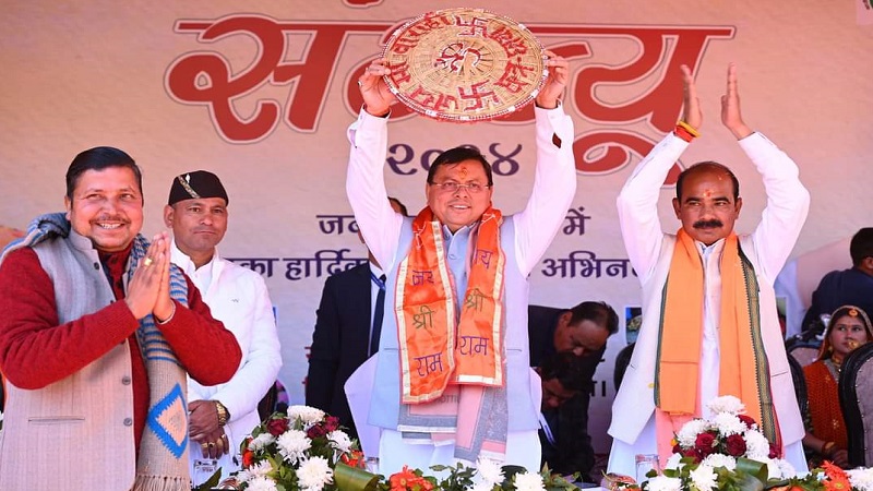 सीएम ने कहा कि श्री राम मंदिर का ऐतिहासिक निर्माण कराया गया। प्रधानमंत्री मोदी द्वारा कश्मीर से धारा 370 हटा कर कश्मीर को पूर्ण रूप से भारत का हिस्सा बनाया। उन्होंने कहा कि इस देव भूमि की आबोहवा खराब नहीं होने देंगे। उन्होंने कहा कि जो भी देव भूमि की छवि खराब करने का प्रयास करेगा उसके साथ सख्ती से निपटा जाएगा। उन्होंने कहा कि पूरे प्रदेश में सरकारी भूमि से अतिक्रमण हटाने की लगातार कार्रवाई गतिमान है तथा यह इसी प्रकार चलती रहेगी। उन्होंने कहा कि जो भी सरकारी कार्य में बाधा डालेगा उसके साथ सख्ती से निपटा जाएगा। अपने संबोधन में मुख्यमंत्री ने कहा कि चंपावत जिले को आदर्श जिला बनाने हेतु निरंतर कार्य किया जा रहा है यहां के विकास का मॉडल अन्य हिमालयी राज्यों को भी एक संदेश व अनुकरणीय करेगा।अनेक विकास कार्य चंपावत जिले में किए जा रहे हैं। पर्यटन स्थलों को विकसित किया जा रहा है। उन्होंने कहा कि आज हमारा राज्य निरंतर विकास के लिए अग्रसर है। अग्रणी जनपद व प्रदेश बन रहा है। इसमें हमारी महिलाओं की अहम भूमिका है। वह श्रेष्ठ चंपावत व श्रेष्ठ राज्य के लिए अपनी भूमिका निभाएंगे।