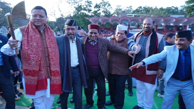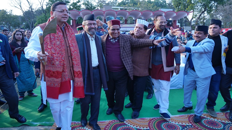 जौनसार बावर सांस्कृतिक महोत्सव में लोक कलाकारों के साथ झूमे सीएम धामी