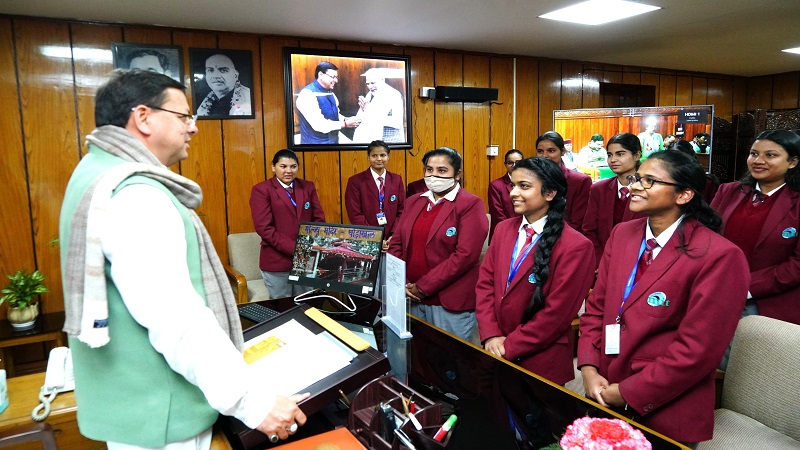सीएम धामी से विधानसभा की कार्यवाही का अवलोकन करने आये छात्राओं ने की विस्तार से चर्चा