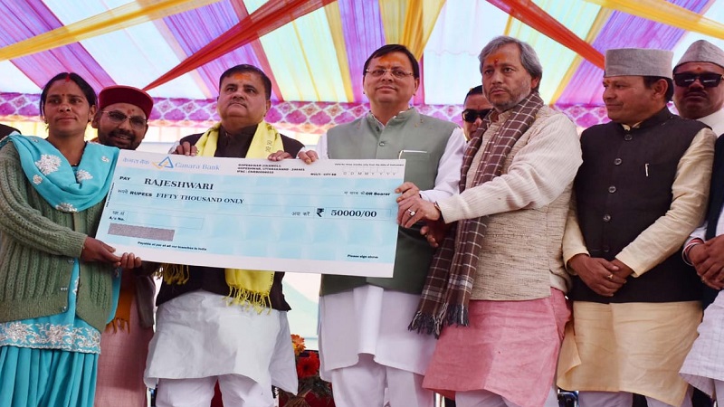 इस दौरान मुख्यमंत्री ने अटल आवास योजना के अंतर्गत निर्मित भवनों के 02 लाभार्थियों को घर की चाबी सौंपी। जिसमें मथुरा लाल और मुकेश लाल शामिल है। प्रधानमंत्री आवास योजना (शहरी) के अंतर्गत नीलम देवी को द्वितीय किश्त के तहत 60 हजार का चेक प्रदान किया। प्रधानमंत्री आवास योजना (ग्रामीण) के अंतर्गत संगीता देवी और गुड्डी देवी को घर की चाबी प्रदान की। मुख्यमंत्री स्वरोजगार योजना के अंतर्गत राजेश्वरी देवी और नरेन्द्र सिंह को 50-50 हजार रुपये का अंशदान धनराशि के चेक प्रदान किए। महिला सशक्तिकरण के तहत मन्दोदरी देवी को महालक्ष्मी किट प्रदान किया। उल्लेखनीय कार्य के लिए युवक मंगल दल बूरा को 75 हजार और महिला मंगल दल आला जोखना 37 हजार 500 की प्रोत्साहन राशि के चेक प्रदान किए। देवभूमि मत्स्य जीवी सहकारिता समिति को 20 लाख का चेक प्रदान किया।