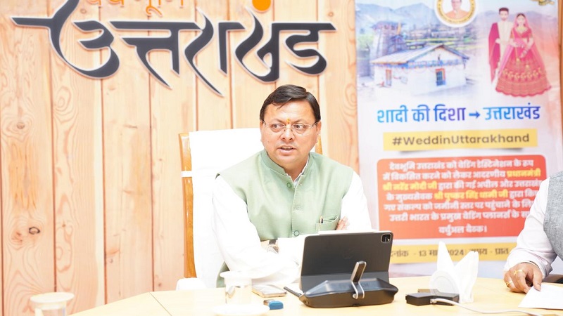 मुख्यमंत्री ने बैठक में वर्चुवल रूप से जुड़े हुये देश के प्रमुख वेडिंग प्लानर्स का हार्दिक स्वागत व अभिनन्दन करते हुये कहा कि आप वेडिंग के क्षेत्र में पहले से जुड़े हुये हैं तथा आप लोगों ने काफी अच्छे-अच्छे सुझाव वेडिंग डेस्टिनेशन के सम्बन्ध में दिये हैं, जिन्हें जल्दी ही अमल में लाया जायेगा।, मुख्यमत्री ने कहा कि उत्तराखंड में कई ऐसे धार्मिक और प्राकृतिक सुंदरता से परिपूर्ण स्थल है, जिन्हें फिल्मों की शूटिंग के साथ-साथ प्री-वेंडिंग शूट के लिए भी प्राथमिकता दी जा रही है। उन्होंने कहा कि चारधाम के अलावा उत्तराखंड का नैसर्गिक सौंदर्य हमेशा से देश-दुनिया के लोगों को आकर्षित करता रहा है तथा अब वेडिंग डेस्टिनेशन के रूप में भी प्रदेश खास पहचान बनाएगा। सरकार उत्तराखंड को वेडिंग डेस्टिनेशन के रूप में विकसित करने के लिए एक विस्तृत नीति बनाने पर कार्य कर रही है और जल्द ही उसके सुपरिणाम सामने आएंगे, उन्होंने यह भी कहा की प्रधानमंत्री श्री नरेंद्र मोदी जी की अपेक्षा के अनुरूप उत्तराखंड जल्द ही वेडिंग डेस्टिनेशन के क्षेत्र में भारत ही नहीं वरन विश्व में नंबर 1 बनेगा।