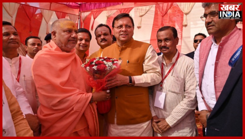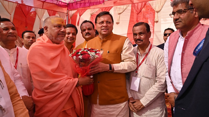 सीएम धामी ने महामण्डलेश्वर स्वामी यतीन्द्रानन्द गिरी महाराज का लिया आशीर्वाद