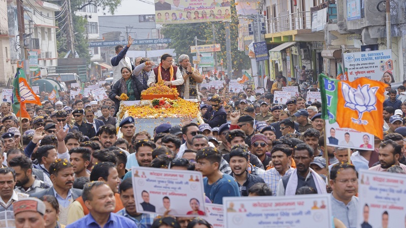 सीएम धामी का कोटद्वार में भव्य रोड शो, उमड़ा जन सैलाब