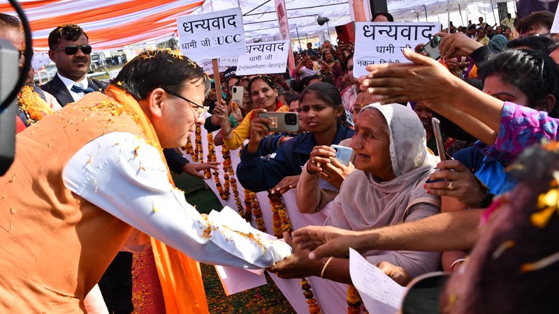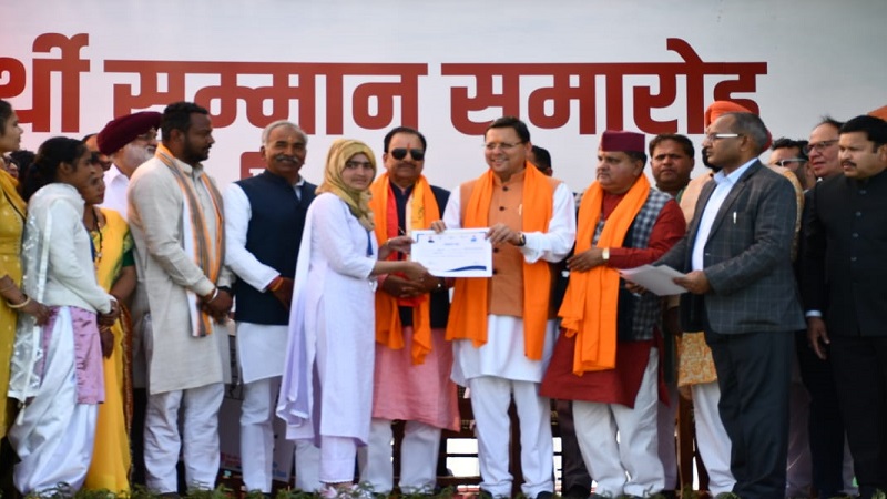 मुख्यमंत्री ने कहा कि विकास के साथ ही हमनें राज्य के हित में कई ऐसे ऐतिहासिक फैसले लिए जो उत्तराखंड को एक बेहतर और श्रेष्ठ उत्तराखंड बनाने में निश्चित ही अपना योगदान दे रहे हैं। उन्होंने कहा कि हमारी सरकार ने समान नागरिक संहिता को लागू किया जिससे मातृशक्ति को कई कुरीतियों और उत्पीड़नों से मुक्ति मिलेगी। हमने देश में सबसे कड़ा नकल विरोधी कानून लागू किया जिससे कि पेपर लीक पर लगाम लग गई। अब पारदर्शिता से सभी परीक्षाएं हो रही हैं। चयनित अभ्यर्थियों को नियुक्ति पत्र देने के कार्यक्रम प्रतिदिन आयोजित हो रहे हैं। हमारी सरकार ने लैंड जिहाद के खिलाफ मजबूती से मुहिम चलाकर अब तक 5000 एकड़ से अधिक सरकारी जमीनों से गैरकानूनी कब्जे को खत्म किया। उन्होंने कहा कि उत्तराखंड देवभूमि है, जो भी यहां अशांति पैदा करने की कोशिश करेगा उसको किसी भी हालत में बख्शा नहीं जाएगा। उन्होंने कहा कि इसके साथ ही हमारी सरकार ने जबरन धर्मांतरण के खिलाफ सख्त कानून बनाया है क्योंकि हम अपने प्रदेश की डेमोग्राफी के साथ छेड़छाड़ बिल्कुल बर्दाश्त नहीं कर सकते। धर्मांतरण विरोधी कानून हमारी देवभूमि की संस्कृति और पवित्रता की रक्षा करेगा। मुख्यमंत्री ने प्रधानमंत्री जन मन योजना के अंतर्गत ग्राम चनकपुर निवासी प्रेमवती, ग्राम शिवपुरी निवासी आकांक्षा को प्रमाण पत्र तथा एनआरएलएम की लखपति दीदी योजना के अंतर्गत बाजपुर गांव की गुलनाज, चकरपुर की पूनम सागर एवं कनोरा की गुलिस्तां जहाँ एवं इसके उपरांत मुक्ता स्वयं सहायता समूह की उर्मिला काण्डपाल, दशमेश स्वयं सहायता समूह की सन्दीप कौर, गुलशन स्वयं सहायता समूह की आशिया, गुरुनानक स्वयं सहायता समूह की परमजीत कौर, दुर्गा शक्ति स्वयं सहायता समूह माया बिष्ट एवं भरत स्वयं सहायता समूह की कलावती को ब्याज मुक्त ऋण के चेक वितरित किए। मुख्यमंत्री ने मतदाता जागरूकता बूथ पर जाकर सेल्फी पॉइंट पर फोटो खिंचवाई एवं जनता से शत प्रतिशत मतदान करने की अपील की।