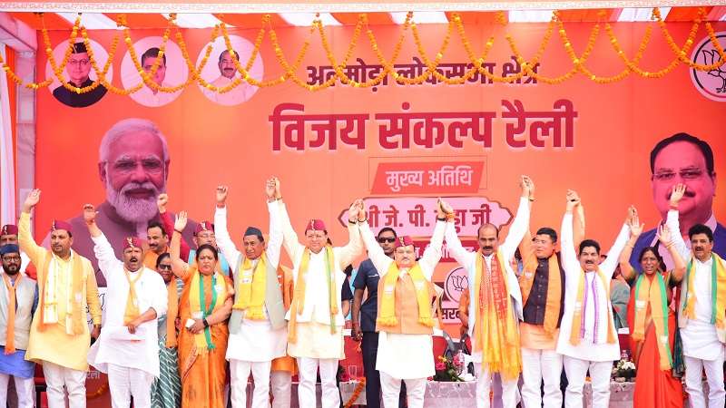 मुख्यमंत्री पुष्कर सिंह धामी ने जे.पी नड्डा का देवभूमि उत्तराखंड की समस्त जनता की ओर से पिथौरागढ़ पधारने पर स्वागत करते हुए कहा कि आदरणीय श्री नड्डा जी के नेतृत्व में भाजपा अटक से कटक और कश्मीर से कन्याकुमारी तक अपना प्रसार, एवं संगठन का विस्तार कर चुकी है। भाजपा के बिना भारतीय राजनीति की कल्पना नहीं की जा सकती है। श्री नड्डा जी का व्यवहार, विनम्र व्यक्तित्व से हम सभी कार्यकर्ताओ को प्रेरणा मिलती है। उन्होंने कहा लोकसभा चुनावों का शंखनाद हो चुका है। आदरणीय प्रधानमंत्री जी और अध्यक्ष नड्डा जी ने विकसित उत्तराखंड और विकसित भारत के संकल्प को सिद्ध करने के लिए 4 जून को 400 पार पहुंचने का नारा दिया है। उन्होंने कहा ये 400 पार का नारा मोदी जी की गारंटी और विकास की चाबी है। मुख्यमंत्री ने कहा कि 400 पार का लक्ष्य विकसित भारत, दुनिया की तीसरी सबसे बड़ी आर्थिक महाशक्ति, बनाने का लक्ष्य है। जनता के आशीर्वाद से अल्मोड़ा-पिथौरागढ़ लोकसभा सीट के साथ ही उत्तराखंड की पांचों सीटों पर भाजपा को प्रचंड बहुमत से विजय दिलाकर आदरणीय प्रधानमंत्री जी के संकल्प को सिद्ध करने का काम करेंगे। उन्होंने कहा दूसरी पार्टियों दूर-दूर तक मैदान में दिखाई नहीं दे रही हैं। जनता के आशीर्वाद से आने वाले परिणामो से विपक्ष भली भांति परिचित है। इसलिए विपक्षी पार्टियों को इस बार कोई टिकट लेने वाला भी नहीं मिल रहा है।
