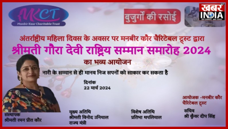 मनबीर कौर चैरिटेबल ट्रस्ट देहरादून द्वारा गौरा देवी सम्मान समारोह का होगा आयोजन