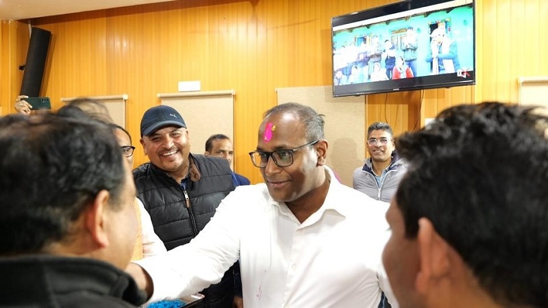 देहरादून, खबर न्यू इंडिया (न्यूज़ डेस्क) : मुख्य निर्वाचन अधिकारी कार्यालय देहरादून द्वारा शुक्रवार को सचिवालय स्थित मीडिया सेंटर में पत्रकार होली मिलन समारोह का आयोजन किया गया। इस अवसर पर मुख्य निर्वाचन अधिकारी डॉ. बी.वी.आर.सी पुरूषोत्तम ने सभी मीडिया प्रतिनिधियों को होली की शुभकामनाएं दी। मुख्य निर्वाचन अधिकारी ने राज्य में मतदान प्रतिशत बढ़ाने के लिए प्रिन्ट, इलेक्ट्रॉनिक और सोशल मीडिया माध्यमों से लोगों को जागरूक करने की अपील भी की।