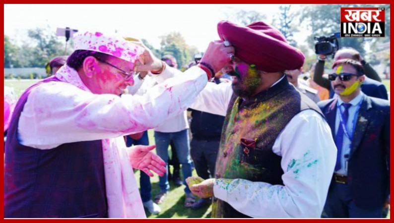 सीएम धामी ने राज्यपाल को रंग लगाकर मनाई होली