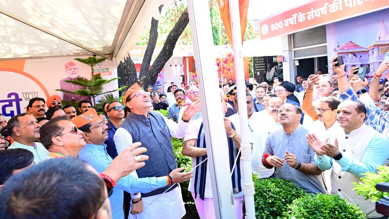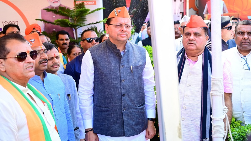 सीएम धामी ने बीजेपी के स्थापना दिवस पर प्रदेश कार्यालय में फहराया झंडा