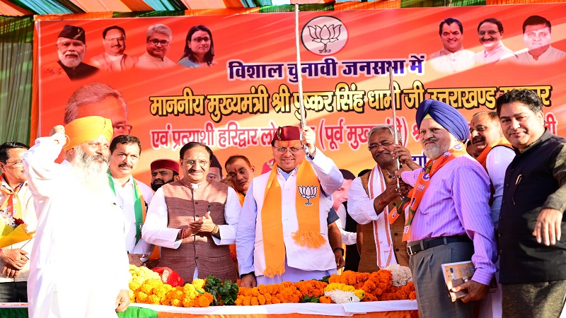 मुख्यमंत्री ने कहा कि प्रधानमंत्री मोदी की गारंटियां देश के हर गरीब और पिछड़े व्यक्ति का जीवन बेहतर बना रही हैं। मोदी जी ने देशहित में कई कड़े फैसले लिए जिसमें जम्मू-कश्मीर से अनुच्छेद 370 हटाये जाने, तीन तलाक कानून लागू किया जाना, नागरिकता संशोधन अधिनियम (CAA) लागू किया जाना, श्रीराम मंदिर का निर्माण कार्य शामिल है। राज्य सरकार ने भी उत्तराखंड के हित में कई कड़े फैसले लिए हैं। आजादी के बाद हिंदुस्तान का पहला राज्य उत्तराखंड बन गया है जहां समान नागरिक संहिता विधेयक पारित किया गया है। नकल रोधी कानून, धर्मांतरण विरोधी कानून, दंगा रोधी कानून लागू किया गया हैं। महिलाओं को 30 प्रतिशत क्षैतिज आरक्षण दिया गया है। मुख्यमंत्री ने कहा कि 2014 से पहले कांग्रेस की सरकार में हर महीने घोटाले और भ्रष्टाचार सामने आते थे। लेकिन प्रधानमंत्री मोदी ने भ्रष्टाचार को जड़ से खत्म करने का संकल्प लिया है। उन्होंने कहा कांग्रेस का मूल मंत्र भ्रष्टाचार, वंशवाद, तुष्टीकरण और महिला विरोध से है। राहुल गांधी को बार-बार कांग्रेस लांच करती है पर वो लॉचिंग असफल रह जाती है। कांग्रेस के पास अब न लोग हैं, और न लोगों का समर्थन। कांग्रेस ने उत्तराखंड में एक भी महिला को टिकट नहीं दिया। देश की जनता ने कांग्रेस की इतनी हालत खराब कर दी है कि कांग्रेस को अपने टिकट पर चुनाव लड़ने वाले लोग नहीं मिल रहे हैं। कोई टिकट लेने वाला नहीं मिल रहा है। बड़े बड़े नेता टिकट न मिलने की सिफारिश लगा रहे हैं। जैसे-जैसे चुनाव नजदीक आता है, हार के डर से भयभीत कांग्रेस दिवालियापन को प्राप्त होती जा रही है। कांग्रेस के पास जब कोई मुद्दा नहीं होता तो ये ईवीएम का नाम जपने लगते हैं।