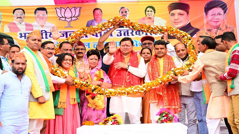 सीएम धामी कर रहे ताबड़तोड़ रैली, चिन्यालीसौड़ में निकाला रोड शो