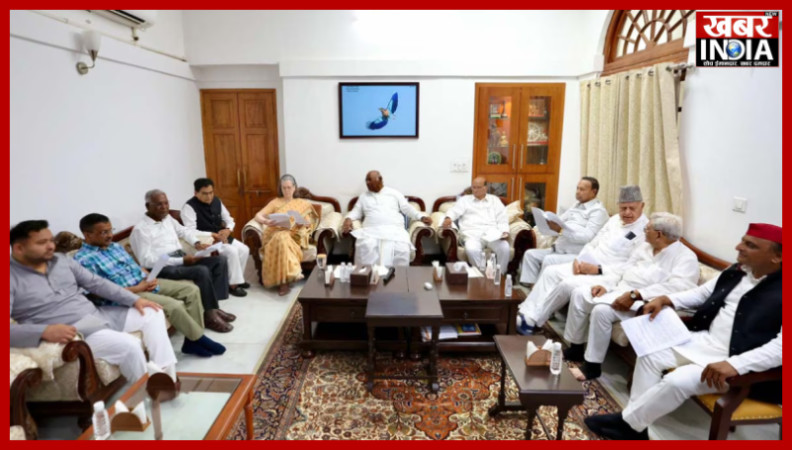 नई दिल्ली/खबर न्यू इंडिया (न्यूज़ डेस्क): कांग्रेस अध्यक्ष मल्लिकार्जुन खरगे के दिल्ली आवास पर आज ‘इंडिया’ गठबंधन के नेताओं की बैठक हुई. करीब 2 महीने से चल रही लोकसभा चुनाव प्रक्रिया खत्म होने के बाद अब सभी को नतीजों का इंतजार है. आज एग्जिट पोल के नतीजे सामने होंगे. वहीं असली नतीजे तो 4 जून को आने वाले हैं. उससे पहले कांग्रेस अध्यक्ष मल्लिकार्जुन खरगे ने दावा किया है कि INDIA गठबंधन इस चुनाव में कम से कम 295 प्लस सीटें जीतेगा. करीब ढाई घंटे तक चली गठबंधन के बाद कांग्रेस अध्यक्ष मल्लिकार्जुन खरगे ने मीडिया से बात करके मीटिंग में हुई चर्चा पर जानकारी दी. खरगे ने कहा, 'इंडी गठबंधन की बैठक हुई. आज हमने बहुत मुद्दों पर चर्चा की. चुनाव के वक्त क्या क्या कठिनाई हो सकती हैं, कार्यकर्ताओं को क्या इंस्ट्रक्शन देना है. काउंटिंग के दिन कैसे केयर रखनी है. हमें अपनी बात कैसे रखनी है, इन सब पर चर्चा हुई. उन्होंने आगे कहा, गठबंधन का निर्णय ये है कि बीजेपी और उनके साथी लोग खासकर के एग्जिट पोल पर लोग चर्चा करेंगे.