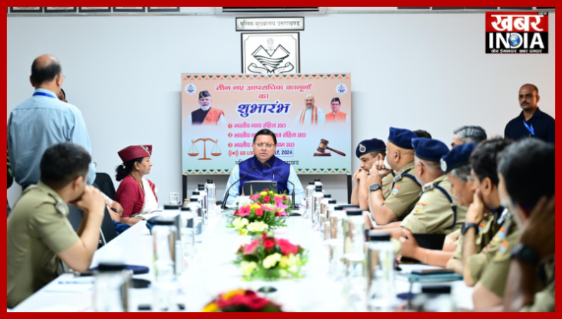 देहरादून, खबर न्यू इंडिया (न्यूज़ डेस्क) : मुख्यमंत्रीपुष्कर सिंह धामी ने सोमवार को पुलिस मुख्यालय देहरादून में आयोजित कार्यक्रम में प्रतिभाग करते हुए भारतीय न्याय व्यवस्था में लागू हुए तीन नए आपराधिक कानूनों का राज्य में औपचारिक शुभारंभ किया। उल्लेखनीय है कि संपूर्ण देश में आज से तीन नए आपराधिक कानून - भारतीय न्याय संहिता 2023, भारतीय नागरिक सुरक्षा संहिता 2023 और भारतीय साक्ष्य अधिनियम 2023“ लागू हो गए हैं। इस अवसर पर मुख्यमंत्री ने तीन नए कानूनों पर आधारित I.O एप्लीकेशन का शुभारंभ एवं विवेचक पुलिसकर्मियों को टैबलेट वितरित किए।
