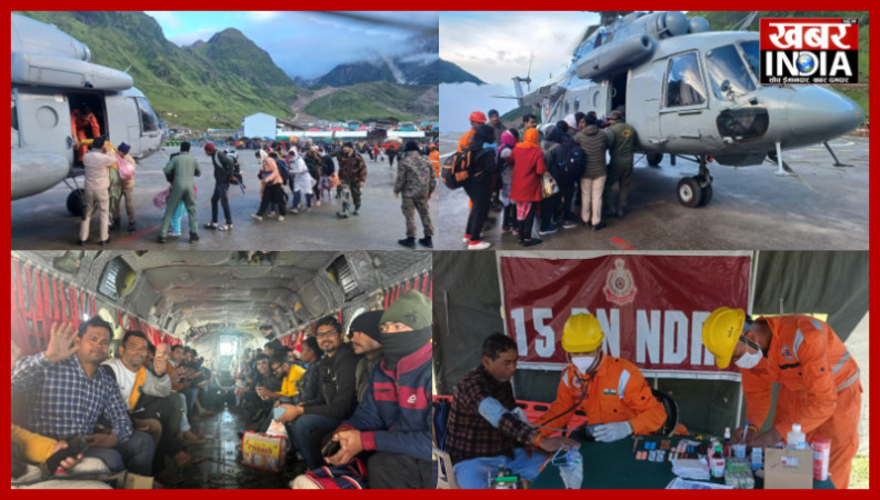 देहरादून, खबर न्यू इंडिया (न्यूज़ डेस्क): मुख्यमंत्री पुष्कर सिंह धामी ने कहा की केदारघाटी में राहत एवं बचाव कार्य युद्ध स्तर पर जारी है। SDRF, NDRF एवं अन्य बचाव दलों द्वारा किए गए बेहतरीन कार्य के फलस्वरूप हजारों तीर्थयात्रियों को सुरक्षित तरीके से आपदा प्रभावित क्षेत्रों से निकाल लिया गया है। ध्वस्त पड़े रास्तों और पैदल पुलों को ठीक करने का कार्य भी शुरू कर दिया गया है।मौसम साफ होने के साथ ही केदार घाटी में आज केंद्र सरकार द्वारा भेजे गए MI 17 और चिनूक के माध्यम से रेस्क्यू फिर से शुरू हो चुका है, मुख्यमंत्री पुष्कर सिंह धामी ने कहा की स्वयं भी लगातार रेस्क्यू ऑपरेशन की मॉनिटरिंग कर रहा हूं। प्रधानमंत्री नरेंद्र मोदी के नेतृत्व में केंद्र सरकार द्वारा हर संभव सहायता प्रदान की जा रही है। आज शुरू हुए ऑपरेशन में अभी तक 133 लोगों को सुरक्षित एयर लिफ्ट कर रेस्क्यू किया जा चुका है। रेस्क्यू किए जा रहे तीर्थ यात्रियों का गौचर हेलीपैड पर स्वास्थ्य परीक्षण किया जा रहा है और आवश्यकता पड़ने पर उन्हें प्राथमिक उपचार भी दिया जा रहा है।