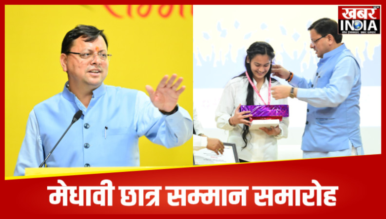 सीएम धामी ने मेधावी छात्र छात्राओं को किया सम्मानित