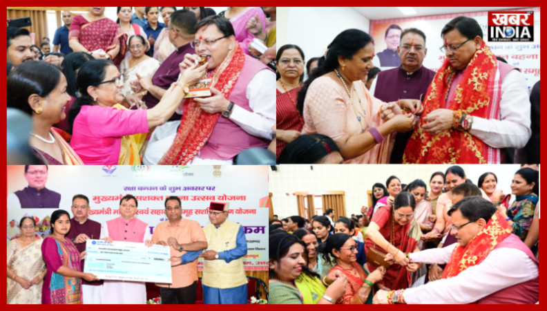 देहरादून, खबर न्यू इंडिया (न्यूज़ डेस्क) : मुख्यमंत्री पुष्कर सिंह धामी ने रक्षाबंधन के अवसर पर शुक्रवार को मुख्यमंत्री आवास में ’मुख्यमंत्री सशक्त बहना उत्सव योजना’ एवं मुख्यमंत्री महिला स्वयं सहायता समूह सशक्तिकरण योजना के अन्तर्गत राज्य स्तरीय कार्यक्रम में प्रतिभाग किया। इस अवसर पर मुख्यमंत्री ने चार जनपदों से आए प्रतिभागियों में से 10 सहायता समूह को रिवॉल्विंग फण्ड के रूप में 25-25 हजार रुपये, 10 समूह को सीआईएफ के रूप में 75-75 हजार रुपये एवं सीसीएल के रूप 1 लाख 50 हजार रुपये की धनराशि के चेक प्रदान कर उन्हें सम्मानित किया। इस अवसर पर प्रदेश के विभिन्न क्षेत्रों से आई महिलाओं ने मुख्यमंत्री को रक्षा सूत्र बांधा तथा उनके दीर्घायु की कामना की।