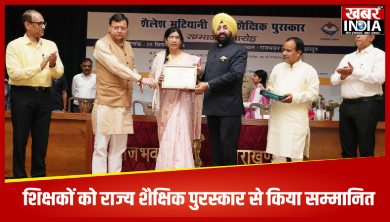 देहरादून, खबर न्यू इंडिया (न्यूज़ डेस्क): ‘‘शैलेश मटियानी राज्य शैक्षिक पुरस्कार’’ सम्मान समारोह में राज्यपाल लेफ्टिनेंट जनरल गुरमीत सिंह (से नि), मुख्यमंत्री पुष्कर सिंह धामी और शिक्षा मंत्री डॉ. धन सिंह रावत ने वर्ष 2023 में शैलेश मटियानी राज्य शैक्षिक पुरस्कारों के लिए चयनित शिक्षक एवं शिक्षिकाओं को सम्मानित किया। शिक्षक दिवस के अवसर पर राजभवन में आयोजित सम्मान समारोह में वर्ष 2023 के लिए चयनित 19 शिक्षकों एवं शिक्षिकाओं को पुरस्कार प्रदान किए गए है। इस कार्यक्रम के मुख्य अतिथि राज्यपाल लेफ्टिनेंट जनरल गुरमीत सिंह (से नि) ने पुरस्कार प्राप्त करने वाले शिक्षक-शिक्षिकाओं को बधाई एवं शुभकामनाएं दी। उन्होंने कहा कि विषम परिस्थितियों एवं दुर्गम क्षेत्रों में विद्यालयी शिक्षा की गुणवत्ता में सुधार के लिए महत्वपूर्ण योगदान देने वाले शिक्षक वास्तव सम्मान के अधिकारी हैं। उन्होंने कहा कि ‘‘मैं शिक्षा के क्षेत्र में आपकी सेवाओं और प्रतिबद्धता के लिए प्रदेशवासियों की ओर से आपका आभार व्यक्त करता हूँ’’।