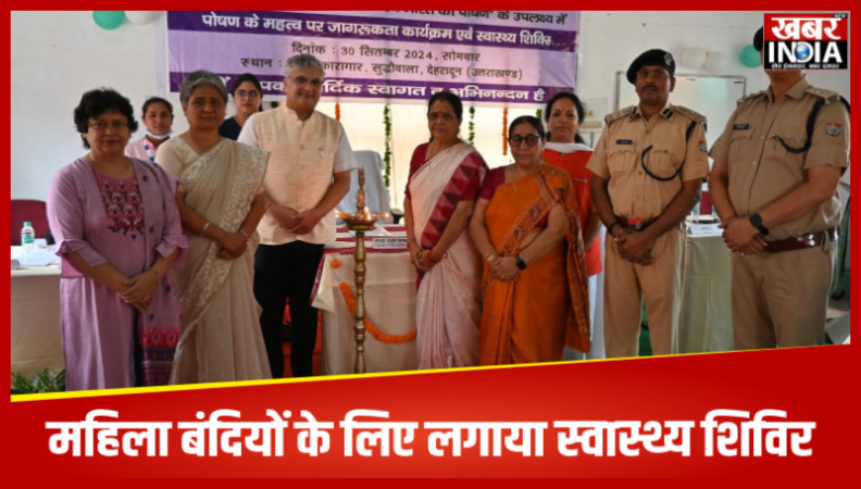 देहरादून, खबर न्यू इंडिया (न्यूज़ डेस्क) : उत्तराखंड राज्य महिला आयोग के द्वारा राष्ट्रीय महिला आयोग के सहयोग से पोषण माह के अंतर्गत जनपद देहरादून के जिला कारागार, सुद्धोवाला में पोषण जागरूकता अभियान के अन्तर्गत पोषण के महत्व और जागरूकता, पोषण वाटिका निर्माण व स्वास्थ्य शिविर का आयोजन किया गया। शिविर का शुभारंभ राज्य महिला आयोग की अध्यक्ष कुसुम कण्डवाल, महानिरीक्षक कारागार उत्तराखण्ड विमला गुंज्याल, उप महानिरीक्षक कारागार दधिराम मौर्य, सदस्य सचिव महिला आयोग उर्वशी चौहान सहित सभी विशेषज्ञों ने दीप प्रज्ज्वलन कर के किया। कार्यक्रम में राज्य महिला आयोग की अध्यक्ष कुसुम कण्डवाल ने कहा कि आज प्रधानमंत्री नरेन्द्र मोदी के नेतृत्व में देशभर में पोषण माह को मनाया जा रहा है, क्योंकि सरकार का उद्देश्य होता है कि देश के सभी नागरिकों को स्वस्थ व सही पोषण युक्त आहार मिले। सबसे ज्यादा पोषक तत्वों युक्त भोजन मोटे अनाज का होता है जिसका उपयोग हमारे लिए अमृत के समान है।