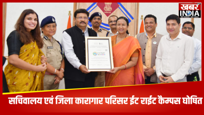 देहरादून, खबर न्यू इंडिया (न्यूज़ डेस्क) : सुरक्षित स्वास्थ्य एवं पर्यावरणीय दृष्टि से बेहतर भोजन उपलब्ध कराने एवं स्वच्छता के मानकों का पालन सुनिश्चित कराने के लिए भारतीय खाद्य सुरक्षा एवं मानक प्राधिकरण (Food Safety Standard Authority of India) द्वारा राज्य सचिवालय परिसर एवं जिला कारागार परिसर को ईट राईट कैम्पस का प्रमाण पत्र निर्गत किया गया है। आज राज्य सचिवालय स्थित सभागार में मुख्य सचिव राधा रतूड़ी की अध्यक्षता में इस सम्बन्ध में एक कार्यक्रम आयोजित किया गया। इस अवसर मुख्य सचिव द्वारा भारत सरकार की ओर से निर्गत ईट राईट कैम्पस प्रमाण पत्र को सचिवालय प्रशासन के सचिव दीपेन्द्र चौधरी एवं उपमहानिरीक्षक जेल को विधिवत प्रदान किया गया। इस महत्वपूर्ण एवं कारगर पहल के लिए मुख्य सचिव ने सचिवालय प्रशासन की सराहना की और कार्यक्रम में मौजूद महानिरीक्षक जेल की ओर से ईट राईट कैम्पस प्रमाणीकरण हेतु किये गये प्रयासों की प्रशंसा की।