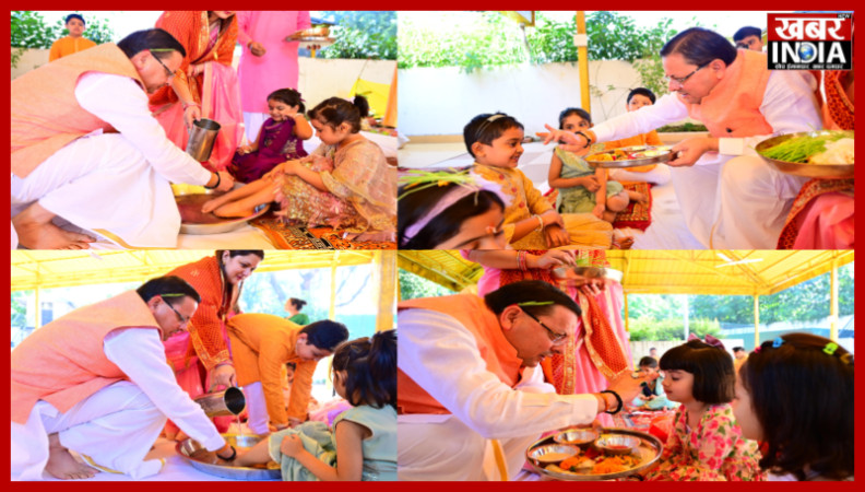 सीएम धामी ने शारदीय नवरात्र की महानवमी पर किया कन्या-पूजन