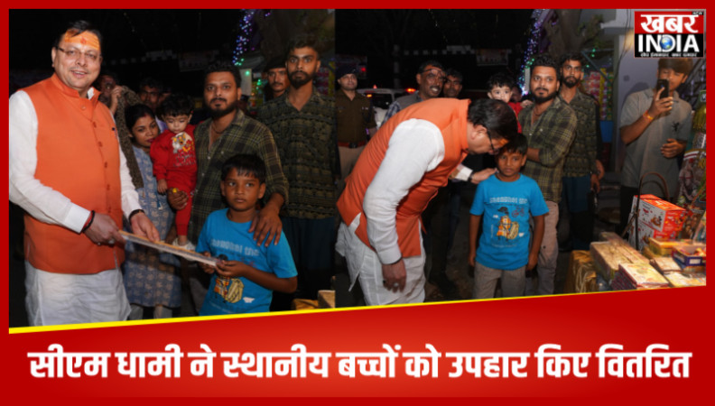 सीएम धामी ने स्थानीय बच्चों के बीच जाकर दीपावली के उपहार किए वितरित