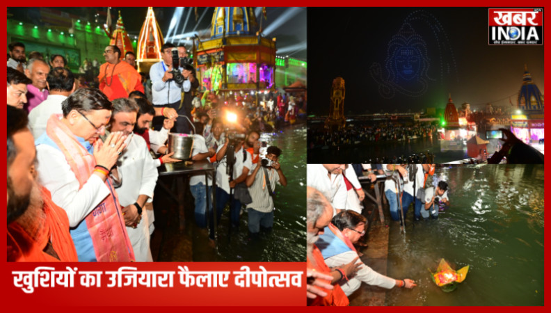 देहरादून, खबर न्यू इंडिया (न्यूज़ डेस्क) : मुख्यमंत्री पुष्कर सिंह धामी ने सोमवार को हर की पैड़ी, हरिद्वार में आयोजित गंगा दीप महोत्सव कार्यक्रम में प्रतिभाग करते हुए मां गंगा की पूजा अर्चना एंव गंगा आरती में सम्मलित होकर प्रदेश की सुख समृद्धि एवं तरक्की की कामना की। इस दौरान हर की पैड़ी स्थित पुलिस चौकी का लोकार्पण भी मुख्यमंत्री द्वारा किया गया। मुख्यमंत्री ने हर की पैड़ी में राज्य की परंपरा आध्यात्मिकता और नैसर्गिकता, सनातन संस्कृति, श्री बद्रीनाथ धाम, श्री केदारनाथ धाम , कुंभ कलश, भगवान शिव, मां गंगा पर आयोजित हुए ड्रोन शो का भी अवलोकन किया। मुख्यमंत्री ने अल्मोड़ा बस हादसे में हताहत हुए लोगों की याद एंव राज्य स्थापना दिवस की वर्षगांठ में दीप प्रज्वलित किया। मुख्यमंत्री की उपस्थिति में हरिद्वार के 50 घाटों में लाखों की संख्या में दीप प्रज्वलित किए गए।