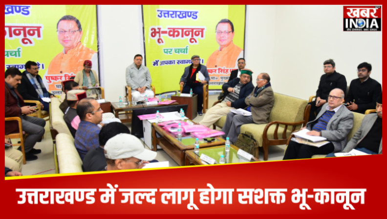 देहरादून, खबर न्यू इंडिया (न्यूज़ डेस्क) : मुख्यमंत्री पुष्कर सिंह धामी ने बुधवार को विधानसभा भवन भराड़ीसैंण में उत्तराखण्ड में सख्त भू-कानून के सम्बन्ध में भू कानून के लिए बनाई गई समिति एवं अन्य पूर्व उच्चाधिकारियों एवं बुद्धिजीवियों के साथ भू कानून के ड्राफ्ट पर चर्चा की गई। इस अवसर पर मुख्यमंत्री ने कहा कि राज्य सरकार भू कानून को लेकर अत्यंत गंभीर है। उन्होंने कहा कि प्रदेश में लागू होने वाले भू-कानून को जन भावनाओं के अनुरूप बनाए जाने की दिशा में काम कर रही है।