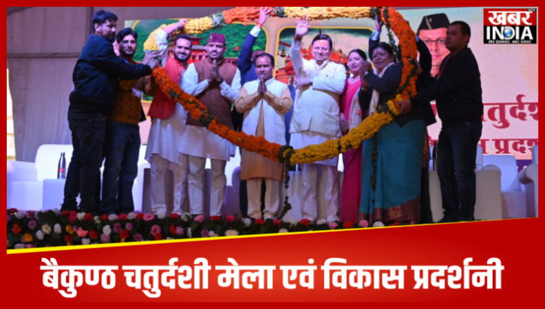देहरादून, खबर न्यू इंडिया (न्यूज़ डेस्क): मुख्यमंत्री पुष्कर सिंह धामी ने श्रीनगर स्थित आवास विकास मैदान में आयोजित सात दिवसीय बैकुण्ठ चतुर्दशी मेला एवं विकास प्रदर्शनी- 2024 का द्वीप प्रज्वलित पर शुभारंभ किया। कमलेश्वर महादेव मंदिर में पूजा अर्चना के उपरांत उन्होंने कार्यक्रम स्थल पर विभागीय स्टॉल का निरीक्षण व जन समुदाय को संबोधित किया। गुरुवार को मुख्यमंत्री ने श्रीनगर पहुंचकर बैकुण्ठ चतुर्दशी मेला एवं विकास प्रदर्शनी- 2024 का शुभारंभ किया। इस दौरान उन्होंने विभागीय स्टॉल का निरीक्षण भी किया। मुख्यमंत्री पुष्कर सिंह धामी ने बैकुंठ चतुर्दशी पर्व पर भगवान कमलेश्वर महादेव मंदिर में मत्था टेका। उन्होंने भगवान शिव का जलाभिषेक कर प्रदेश की सुख समृद्धि की कामना की। मुख्यमंत्री ने शिवलिंग में कमल पुष्प अर्पित किए। मंदिर के महंत श्री आशुतोष पुरी ने पूजा अर्चना सम्पन्न कराई। श्री जयदयाल संस्कृत महाविद्यालय श्रीनगर के छात्रों ने स्वास्ति वाचन किया।