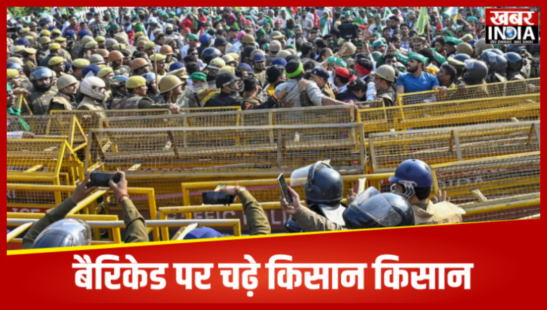 बैरिकेड पर चढ़े किसान किसान, पुलिस ने दागे आंसू गैस के गोले