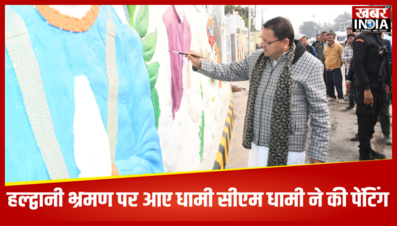 हल्द्वानी भ्रमण पर आए धामी सीएम धामी ने की पेंटिंग