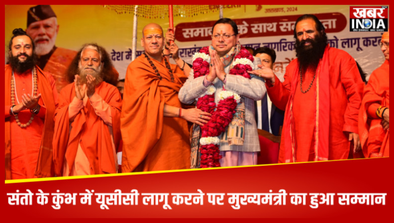 संतो के कुंभ में यूसीसी लागू करने पर मुख्यमंत्री का हुआ सम्मान