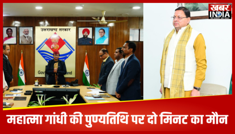 देहरादून, खबर न्यू इंडिया (न्यूज़ डेस्क): राष्ट्रपिता महात्मा गांधी की पुण्यतिथि के अवसर पर मुख्यमंत्री पुष्कर सिंह धामी द्वारा उत्तराखण्ड सदन नई दिल्ली में शहीदों की स्मृति में दो मिनट का मौन रख कर श्रद्धांजलि अर्पित की गई। उत्तराखण्ड सचिवालय में भी मुख्य सचिव राधा रतूड़ी की उपस्थिति में सभी अधिकारियों ने दो मिनट का मौन रख कर शहीदों को श्रद्धांजलि अर्पित की। भारतीय स्वतंत्रता संग्राम में बलिदान देने वाले शहीदों को स्मरण करते हुए पूर्वाह्न 11ः00 बजे सभी जनपदों में भी दो मिनट का मौन रखकर शहीदों को नमन किया गया।