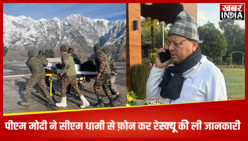 देहरादून, खबर न्यू इंडिया (न्यूज़ डेस्क) : प्रधानमंत्री नरेंद्र मोदी ने मुख्यमंत्री पुष्कर सिंह धामी से फ़ोन पर बात कर जनपद चमोली के माणा में फंसे श्रमिकों को सुरक्षित निकालने के लिए चलाए जा रहे रेस्क्यू ऑपरेशन की जानकारी ली। इस दौरान प्रधानमंत्री ने प्रदेश में हो रही बारिश और हिमपात की स्थिति पर भी विस्तृत जानकारी ली। मुख्यमंत्री ने कहा कि प्रधानमंत्री ने केंद्र सरकार की ओर से किसी भी आपात स्थिति से निपटने के लिए हर संभव सहायता प्रदान किए जाने का आश्वासन दिया। मुख्यमंत्री पुष्कर सिंह धामी ने आज प्रातः काल दूरभाष के द्वारा माणा के निकट हुए हिमस्खलन में फंसे हुए श्रमिकों को निकालने हेतु जारी राहत एवं बचाव अभियान की विस्तृत जानकारी ली। मुख्यमंत्री ने गंभीर रूप से घायल श्रमिकों को हायर सेंटर भेजने हेतु एयरलिफ़्ट करने के लिए अधिकारियों को निर्देश दिए हैं।