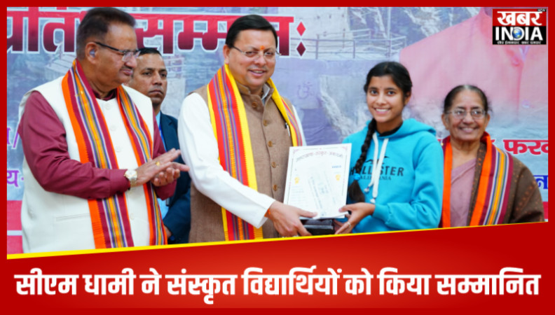 देहरादून, खबर न्यू इंडिया (न्यूज़ डेस्क) : मुख्यमंत्री पुष्कर सिंह धामी ने मुख्यमंत्री आवास स्थित मुख्य सेवक सदन में संस्कृत शिक्षा विभाग द्वारा आयोजित किए गए कार्यक्रम में संस्कृत शिक्षा से जुड़े हुए 261 छात्र-छात्राओं को सम्मानित किया। उन्होंने संस्कृत छात्र प्रतिभा सम्मान में 2024- 25 हेतु 10 वीं और 12 वीं के कुल 24 मेधावी छात्र-छात्राओं को सम्मानित किया। इसमें प्रथम, द्वितीय और तृतीय स्थान प्राप्त करने वालों को क्रमशः रु 5100, रु 4100 और रु 3100 रुपए की धनराशि दी गई। डॉ भीमराव अंबेडकर अनुसूचित जाति- जनजाति संस्कृत छात्रवृत्ति योजना 2024 - 25 हेतु कुल 148 छात्र-छात्राओं को सम्मानित किया। इसी प्रकार से मुख्यमंत्री ने गार्गी संस्कृत बालिका छात्रवृत्ति योजना 2024- 25 के अंतर्गत कुल 89 छात्राओं को सम्मानित किया।