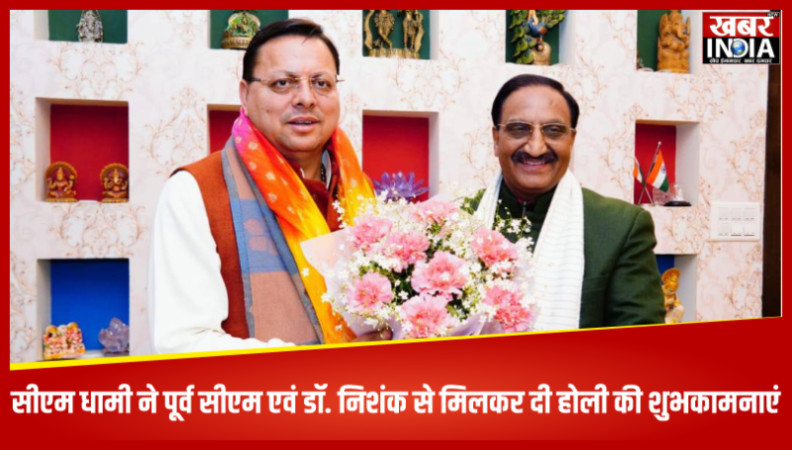 सीएम धामी ने पूर्व सीएम एवं पूर्व केंद्रीय मंत्री डॉ. निशंक से मिलकर दी होली की शुभकामनाएं