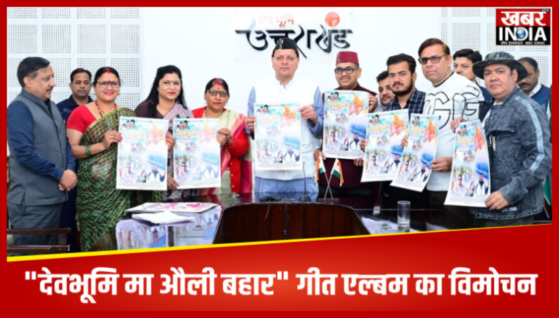 देहरादून, खबर न्यू इंडिया (न्यूज़ डेस्क) : मुख्यमंत्री पुष्कर सिंह धामी ने आज मुख्यमंत्री आवास में "देवभूमि मा औली बहार" गीत एल्बम का विमोचन किया। यह गीत एल्बम आदर्श संस्था के तत्वाधान में बनाई गई है। इस गीत एल्बम में विजेंद्र सिंह बर्तवाल व उत्तम सिंह भंडारी ने स्वर दिया है। गीतकार सत्यपाल सिंह भंडारी, संगीतकार शैलेंद्र शैलू व दिलीप अंजवाल हैं। अभिनव उत्तम सिंह भंडारी व हरीश कोठारी द्वारा किया गया है। इसके प्रोड्यूसर उत्तम सिंह भंडारी हैं।