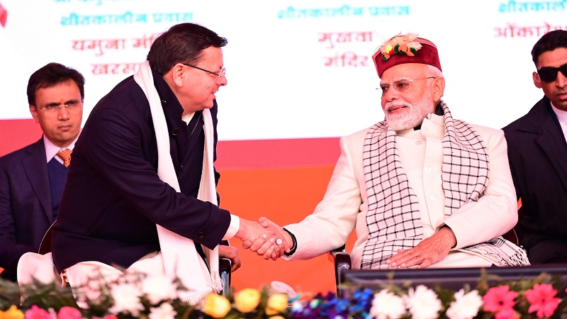 पीएम मोदी ने हाथ मिलाकर, पीठ थपथपाकर सीएम धामी को शाबाशी