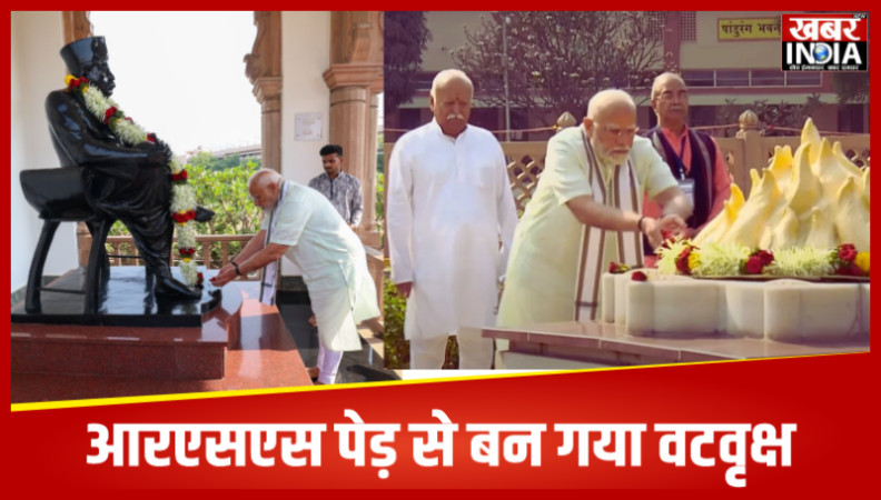 खबर न्यू इंडिया (न्यूज़ डेस्क) : प्रधानमंत्री पद पर आसीन होने के 11 साल बाद पहली बार रविवार को नागपुर स्थित राष्ट्रीय स्वयंसेवक संघ (आरएसएस) मुख्यालय पहुंचे नरेंद्र मोदी ने आरएसएस को भारत की अमर संस्कृति का ‘वट वृक्ष’ बताया. मोदी नागपुर में आरएसएस मुख्यालय का दौरा करने वाले दूसरे प्रधानमंत्री हैं. आरएसएस के एक पदाधिकारी ने बताया कि अटल बिहारी वाजपेयी ने वर्ष 2000 में अपने तीसरे कार्यकाल के दौरान यहां का दौरा किया था. यह मोदी का भी शीर्ष पद पर तीसरा कार्यकाल है. पीएम मोदी और आरएसएस का साथ वर्षों पुराना है और संघ के 100 साल पूरा होने पर पीएम मोदी आरएसएस के नागपुर मुख्यालय पर पहुंचे और स्वयंसेवकों की जमकर तारीफ की। पीएम मोदी ने आरएसएस के संस्थापक डॉ. हेडगेवार और गुरुजी गोलवलकर को पुष्पांजलि अर्पित की और उनके योगदान को याद किया। इस दौरान उन्होंने कहा कि संघ का 100 साल पहले बोया गया पेड़ अब वटवृक्ष बन गया है। पीएम मोदी ने डॉ. हेडगेवार और एमएस गोलवलकर के प्रभाव को स्वीकार करते हुए कहा, "मेरे जैसे अनगिनत लोग परम पूज्य डॉक्टर साहब और पूज्य गुरुजी के विचारों से प्रेरणा और शक्ति प्राप्त करते हैं। इन दो महान लोगों को श्रद्धांजलि देना सम्मान की बात है, जिन्होंने एक मजबूत, समृद्ध और सांस्कृतिक रूप से गौरवशाली भारत की कल्पना की थी।"