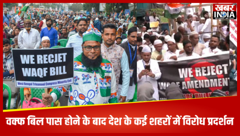 वक्फ बिल पास होने के बाद देश के कई शहरों में विरोध प्रदर्शन