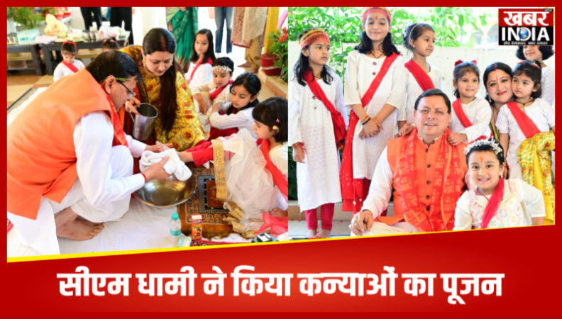 सीएम धामी ने रामनवमी और दुर्गा नवमी पर किया कन्याओं का पूजन