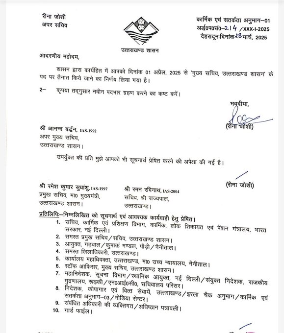 आनंद बर्द्धन बने उत्तराखंड के नए मुख्य सचिव