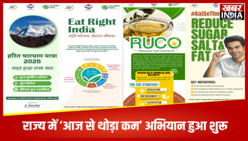 देहरादून, खबर न्यू इंडिया (न्यूज़ डेस्क) । धामी सरकार ने चारधाम यात्रा मार्ग पर तीर्थयात्रियों को स्वास्थ्यवर्धक भोजन उपलब्ध कराने के उद्देश्य से ‘आज से थोड़ा कम’ अभियान शुरू कर दिया है। खाद्य सुरक्षा एवं औषधि प्रशासन, उत्तराखंड के आयुक्त एवं स्वास्थ्य सचिव डॉ. आर. राजेश कुमार ने बताया कि मुख्यमंत्री पुष्कर सिंह धामी व स्वास्थ्य मंत्री डॉ धन सिंह रावत के निर्देशों पर अभियान ग्राउंड जीरो पर शुरू कर दिया गया है। आयुक्त एवं स्वास्थ्य सचिव डॉ. आर. राजेश कुमार ने कहा इस पहल का मुख्य उद्देश्य भोजन में अतिरिक्त नमक, चीनी और वसा की मात्रा को नियंत्रित करना है, जिससे हृदय रोग, मधुमेह और हाई ब्लड प्रेशर जैसी बीमारियों से बचाव किया जा सके। रेस्तरां एवं भोजनालयों को प्रोत्साहित किया जा रहा है कि वे शेफ और खाद्य विशेषज्ञों के सहयोग से स्वास्थ्यवर्धक व्यंजन तैयार करें और पोषण संतुलन का ध्यान रखें। इस अभियान के तहत फ्लेक्स बैनर, पोस्टर एवं डिजिटल माध्यमों के जरिए जागरूकता बढ़ाई जा रही है।