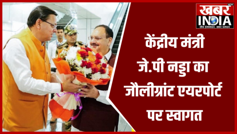 सीएम धामी ने केंद्रीय मंत्री जे.पी नड्डा का जौलीग्रांट एयरपोर्ट पर किया स्वागत