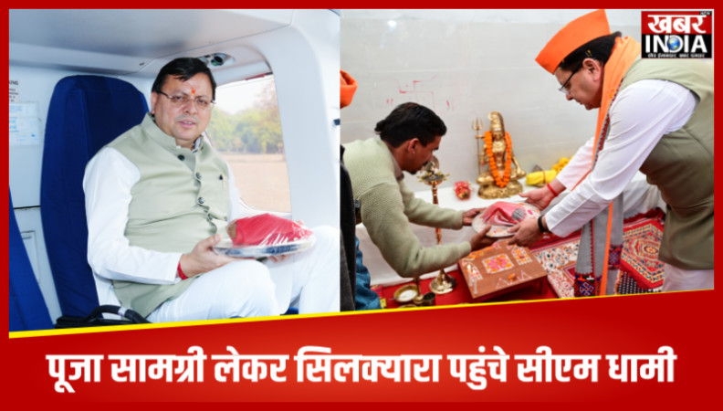 बाबा बौखनाग मंदिर में प्राण प्रतिष्ठा के लिए घर से भेंट और पूजा सामग्री लेकर सिलक्यारा पहुंचे सीएम धामी