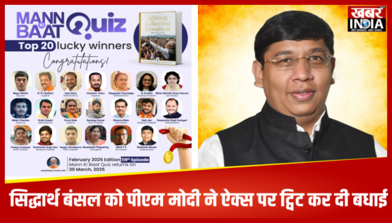 मन की बात प्रश्नोत्तरी प्रतियोगिता में सिद्धार्थ बंसल को प्रथम 20 मे स्थान, पीएम मोदी ने ऐक्स पर ट्विट कर दी बधाई