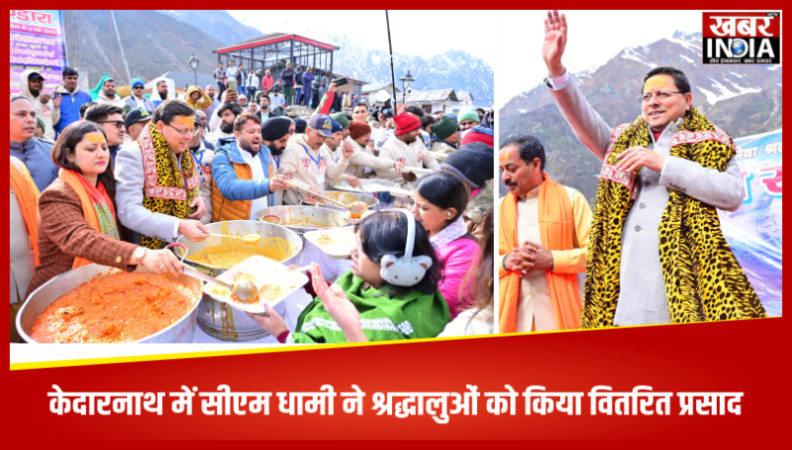 केदारनाथ में सीएम धामी ने श्रद्धालुओं को किया वितरित प्रसाद